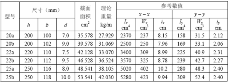 附:型钢表 热轧普通工字钢(GB 706 – 88)