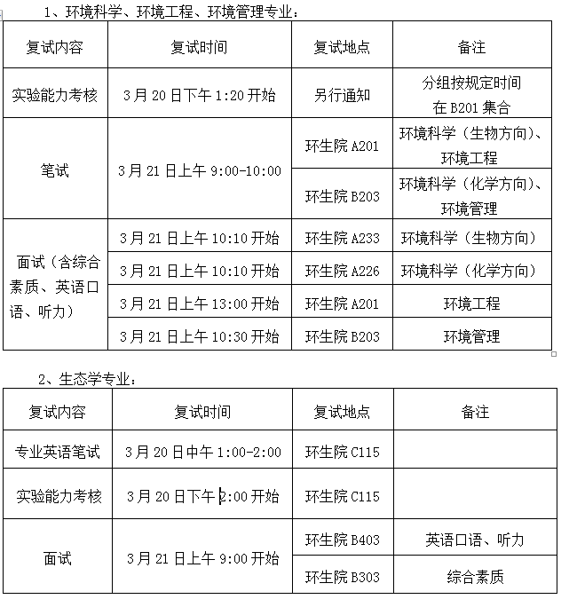报到时间:3月20日上午9:00-11:00,地点:厦门市翔安区厦门大学翔安校区环境与生态学院A209室,考生报到时须携带以下材料接受资格审查: