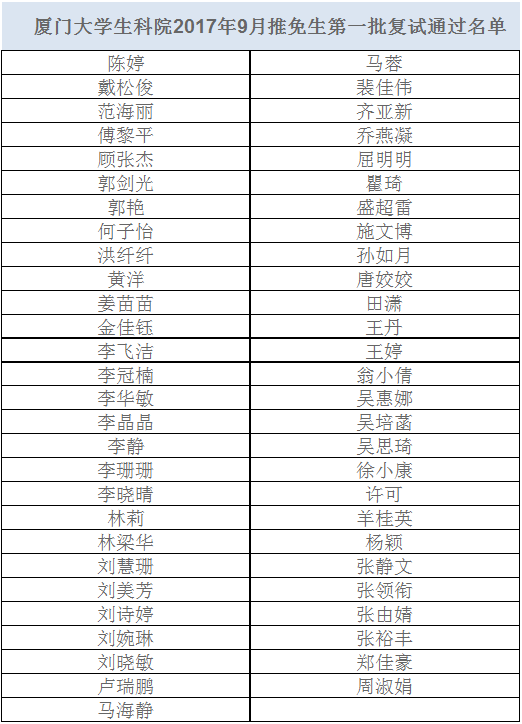 2018年厦门大学生命科学学院推免生第一批复试结果已公布,聚英考研网小编汇总如下,供报考2018厦门大学生命科学学院考生参考复习: