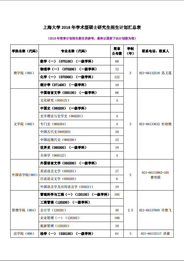 上海大学2018年学术型硕士研究生招生计划汇总表.pdf