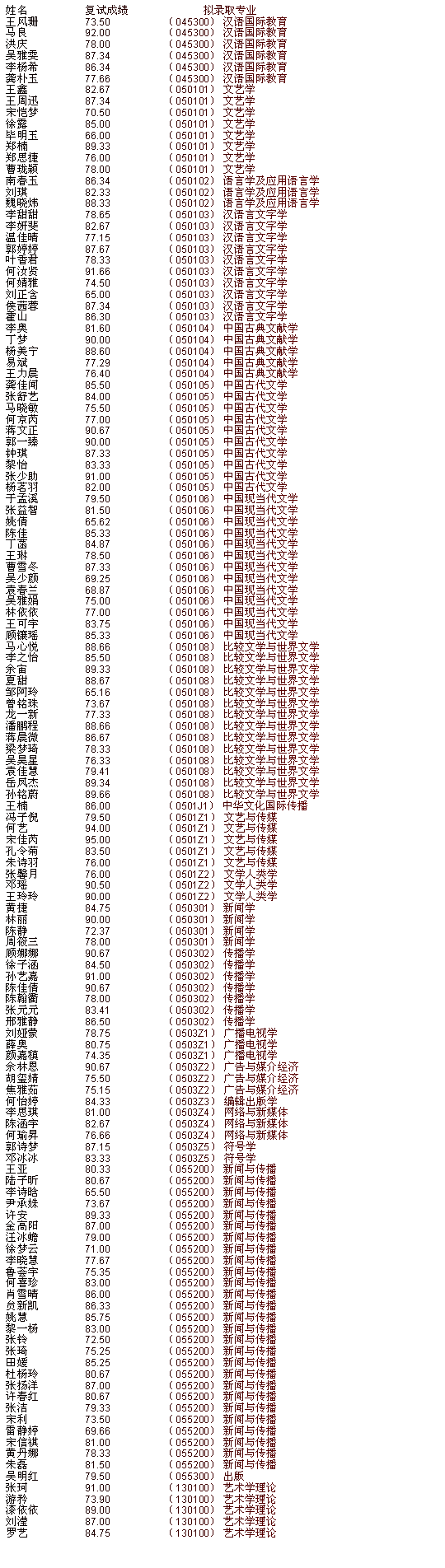 以上是聚创考研网为考生整理的"四川大学文学与新闻学院2018年推免生录取名单公示"的相关考研信息,希望对大家考研备考有所帮助! 备考过程中如有疑问,也可以添加老师微信juchuang911进行咨询。