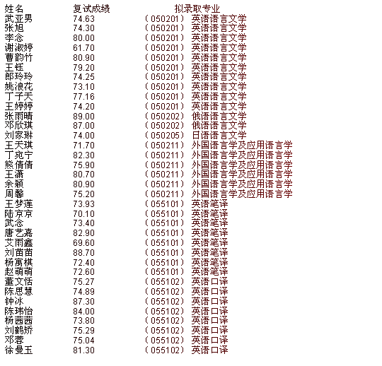 以上是聚创考研网为考生整理的"四川大学外国语学院2018年推免生录取名单公示"的相关考研信息,希望对大家考研备考有所帮助! 备考过程中如有疑问,也可以添加老师微信juchuang911进行咨询。