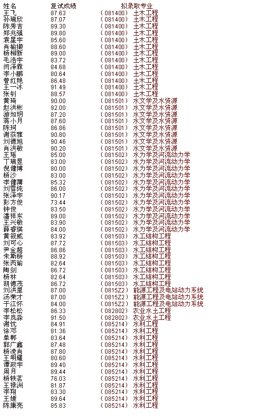 以上是聚创考研网为考生整理的"四川大学水利水电学院、水力学与山区河流开发保护国家重点实验室2018年推免生录取名单公示"的相关考研信息,希望对大家考研备考有所帮助!