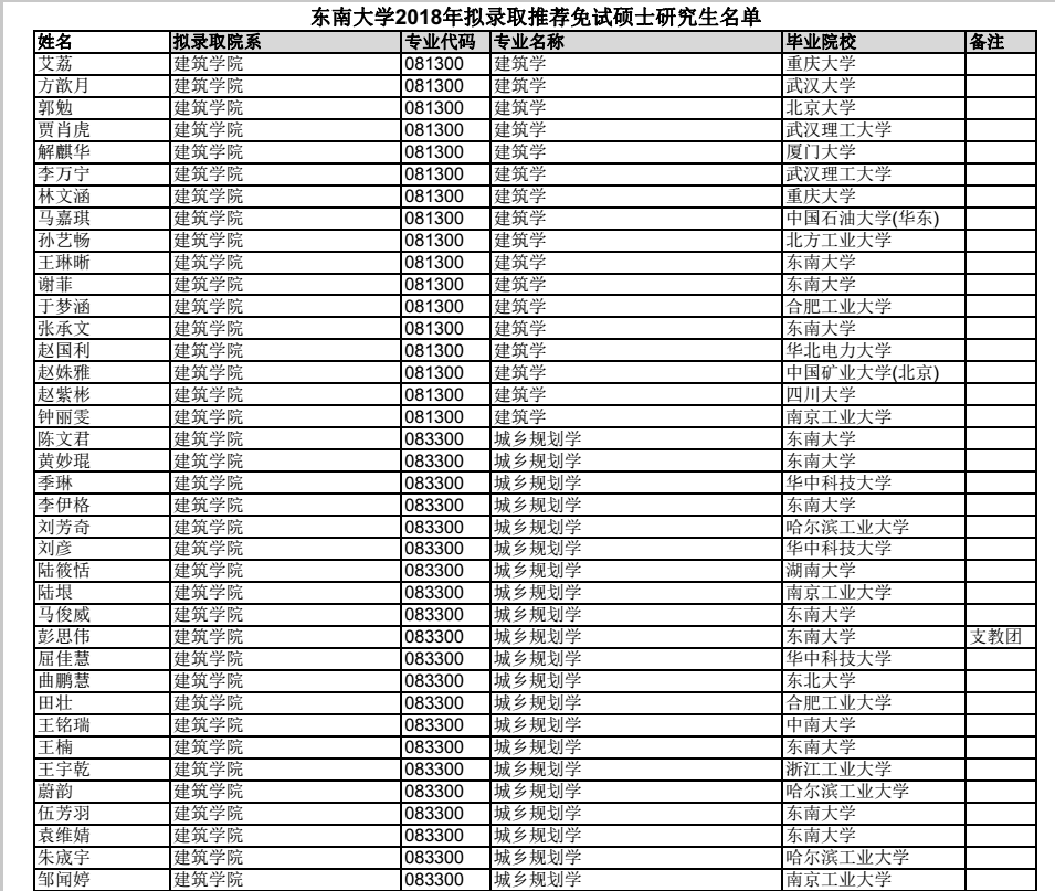 东南大学2018年拟录取推荐免试硕士研究生名单:http://www.juyingonline.com/down/details/290826