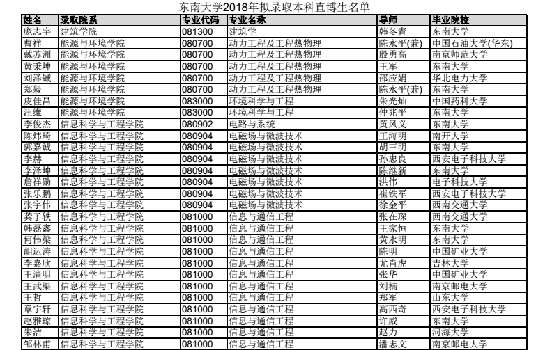 东南大学2018年拟录取本科直博生名单:http://www.juyingonline.com/down/details/290824