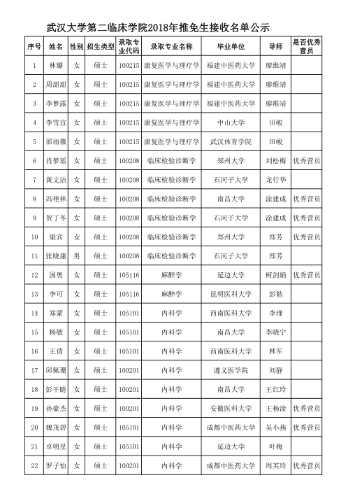 据悉,武汉大学303第二临床学院2018年推免生拟录取名单已公布,聚英考研网为大家整理如下: