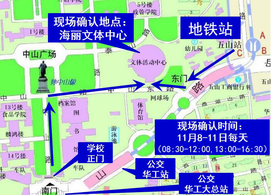建议大家乘坐公共交通工具到我校进行现场确认,可到我校的公共交通工具有: