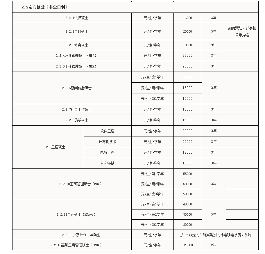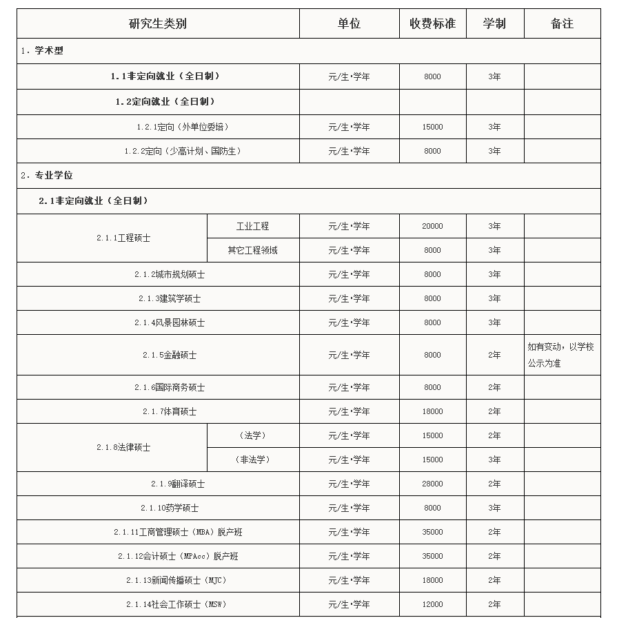 注2:上表学费标准如有变动,以学校最后公示为准。