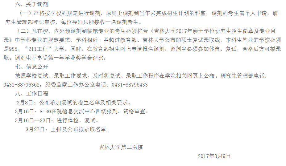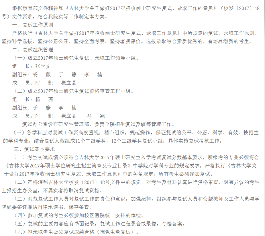 以上是聚创考研网为考生整理的"吉林大学临床医学院第二学院2017年硕士研究生复试通知"的相关考研信息,希望对大家考研备考有所帮助! 备考过程中如有疑问,也可以添加老师微信juchuang911进行咨询。
