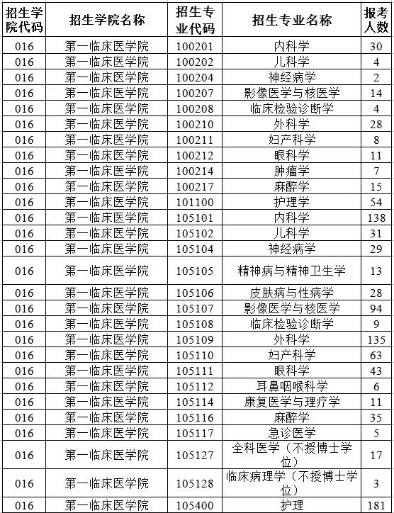 据悉,暨南大学第一临床医学院018年考研报考人数已公布,聚英考研网小编为大家整理了各院系的相关信息,具体内容请看下表: