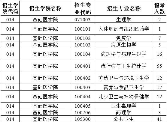 据悉,暨南大学基础医学院2018年考研报考人数已公布,聚英考研网小编为大家整理了各院系的相关信息,具体内容请看下表: