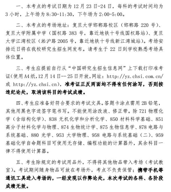 图片:《复旦大学2018年全国考研考试初试的考点考前提醒》内容的部分截取