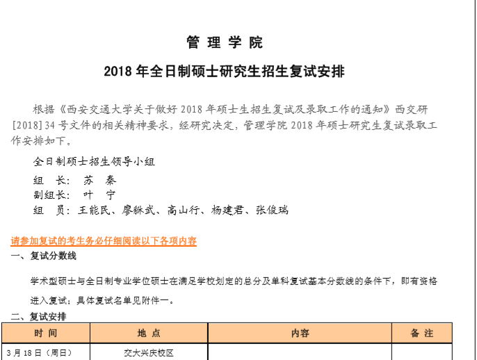 以上是聚创考研网为考生整理的"西安交通大学管理学院2018年硕士研究生招生复试办法"的相关考研信息,希望对大家考研备考有所帮助! 备考过程中如有疑问,也可以添加老师微信juchuang911进行咨询。