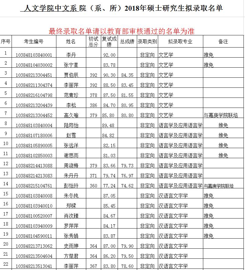 以上是聚创厦大考研网为考生整理的"厦门大学人文学院中文系2018年硕士研究生拟录取名单"的相关考研信息,希望对大家考研备考有所帮助!