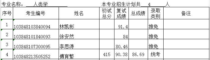 据悉,厦门大学人文学院人类学与民族学系2018年硕士生拟录取名单已公布,聚英厦门大学考研网小编为大家整理如下: