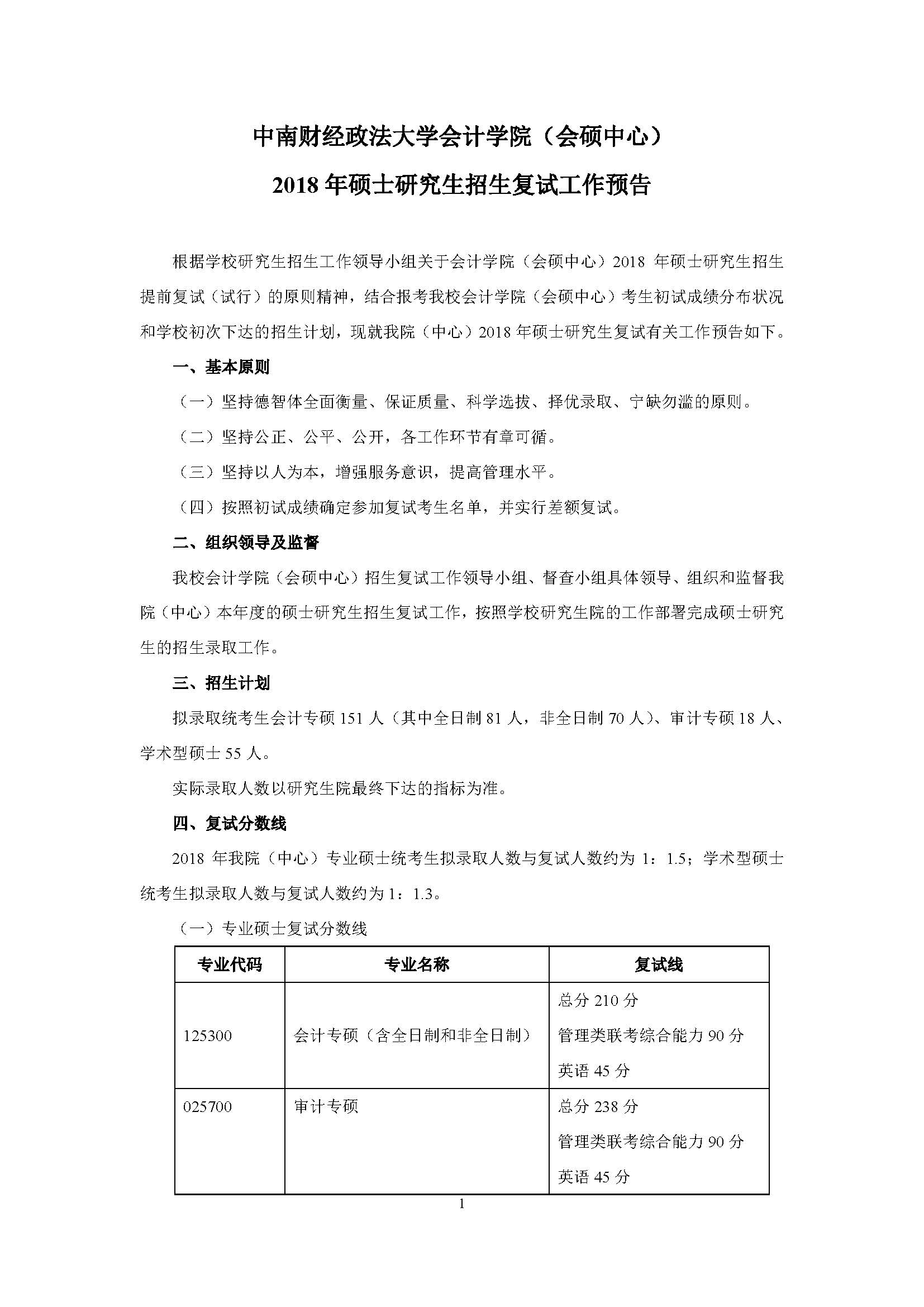 据悉,中南财经政法大学会计学院(会硕中心)2018年硕士研究生招生复试工作预告目前已公布,聚英中南财经政法大学考研网小编为大家整理如下: