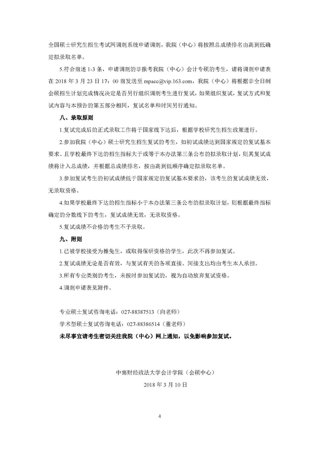 以上是聚创考研网为考生整理的"中南财经政法大学会计学院(会硕中心)2018年硕士研究生招生复试工作预告"的相关考研信息,希望对大家考研备考有所帮助! 备考过程中如有疑问,也可以添加老师微信juchuang911进行咨询。