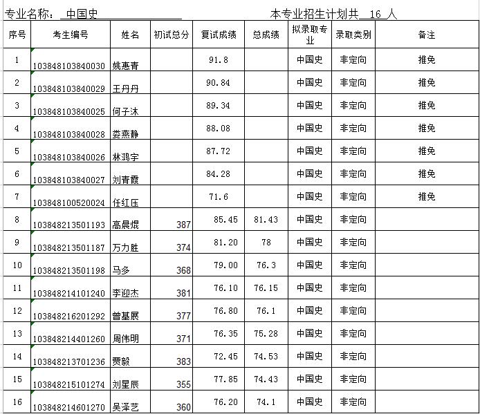 据悉,厦门大学人文学院历史系2018年硕士研究生拟录取名单已发布,聚英厦门大学考研网小编为大家整理如下: