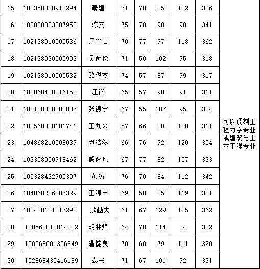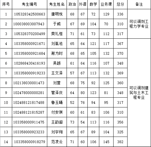 我系成立调剂生选拔小组,严格遵照学校的调剂要求,按照考生本科毕业院校、初试成绩总分、初试数学成绩、专业课成绩等,集体研究确定入围复试的调剂考生,名单如下: