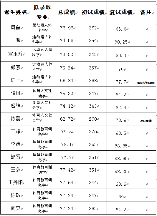 四川大学体育科学研究所2018年非全日制硕士研究生招生拟录取名单公示
