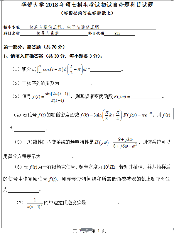 热门关键词:华侨大学硕士研究生考试真题 信息科学与工程学院 信息与通信工程、电子与通信工程专业 信号与系统真题