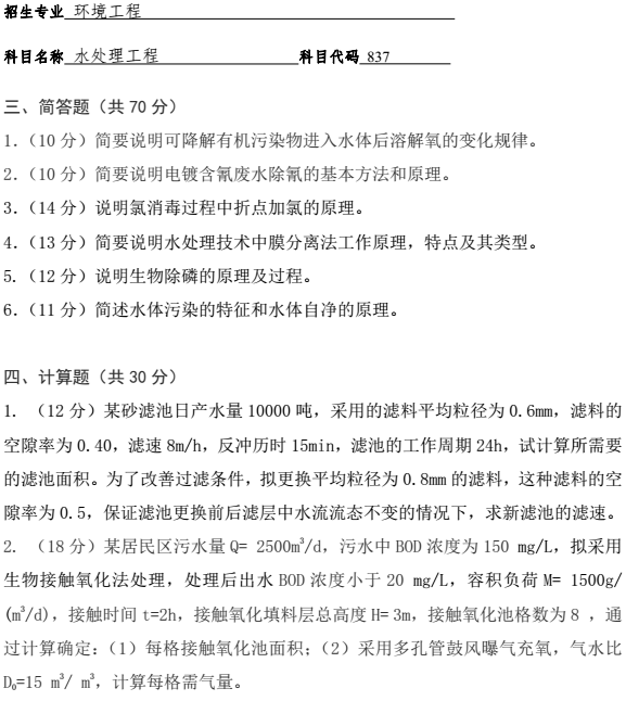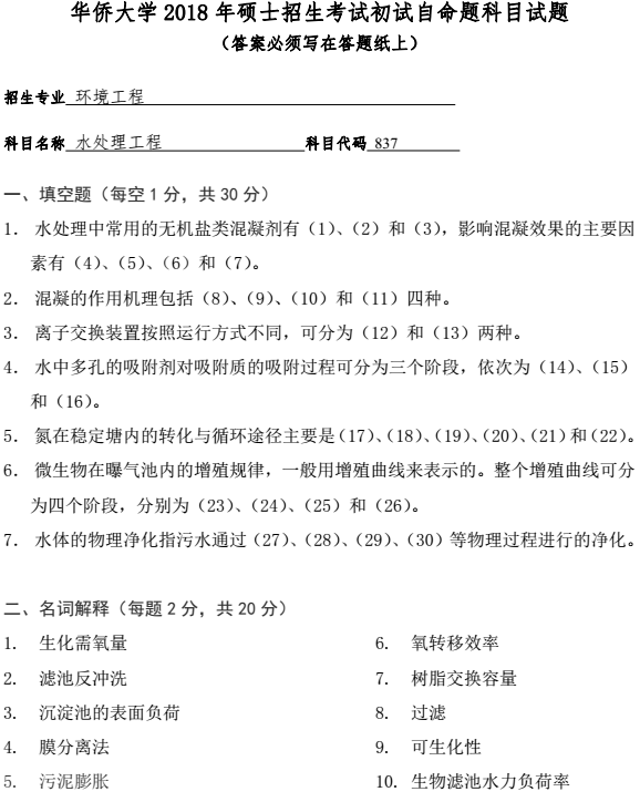 热门关键词:华侨大学硕士研究生考试真题 化工学院 环境工程专业 水处理工程真题