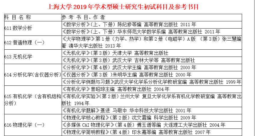 热门关键词:上海大学学术型硕士研究生,初试科目,初试参考书目