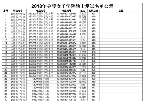 南京师范大学2018年金陵女子学院硕士研究生复试名单公示(含高质量生源调剂生).pdf