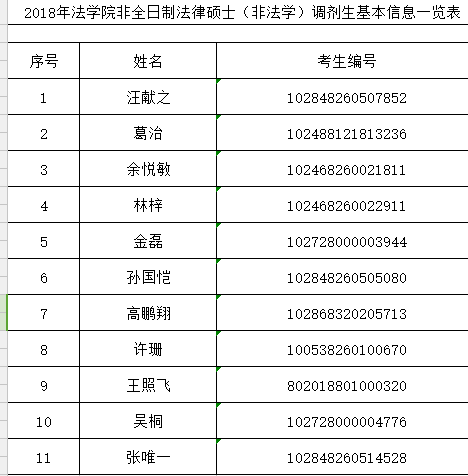 南京师范大学2018年法学院非全日制法律硕士(非法学)复试调剂名单.xls