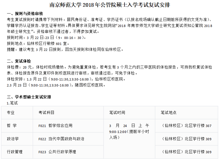 据悉南京师范大学2018年公共管理学院硕士入学考试复试安排已公布,聚英南京师范大学考研网小编为你整理内容如下: