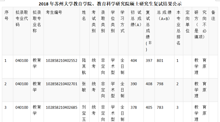 据悉,2018年苏州大学教育学院、教育科学研究院硕士研究生复试结果公示已公布, 聚英苏州大学考研网小编为大家整理内容如下: