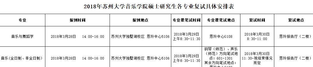 据悉,2018年苏州大学音乐学院硕士研究生复试具体安排已经公布,聚英苏州大学考研网为您整理如下: