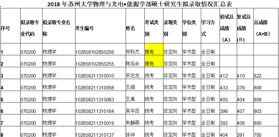 1.2018年苏州大学物理与光电•能源学部硕士研究生拟录取情况汇总表.doc