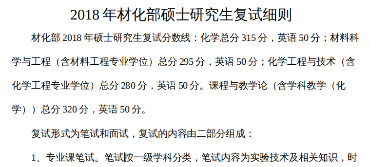 据悉,2018年苏州大学材化部硕士研究生复试细则已经公布,聚英苏州大学考研网为您整理如下: