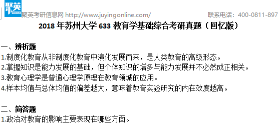 以上是聚创考研网为考生整理的"2018年苏州大学633教育学基础综合考研真题(回忆版)"的相关考研信息,希望对大家考研备考有所帮助! 备考过程中如有疑问,也可以添加老师微信juchuang911进行咨询。