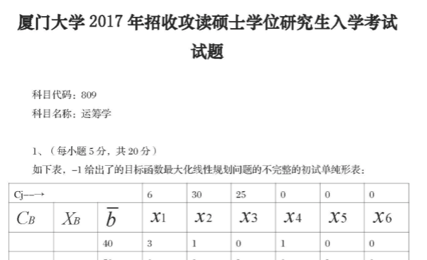 聚英厦大考研网整理了2017年厦门大学809运筹学考研真题(回忆版),部分内容如下: