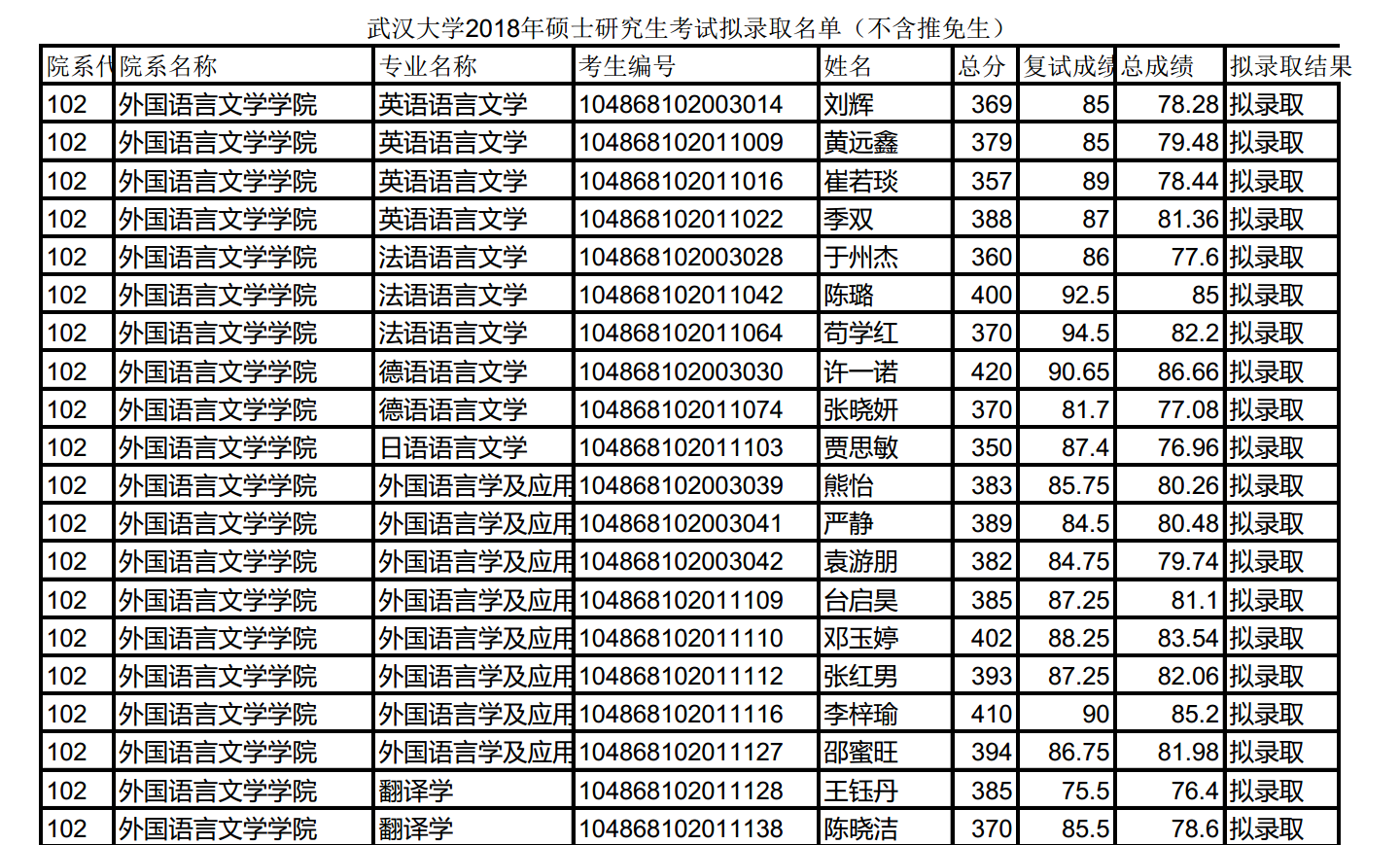 据悉, 武汉大学2018年硕士研究生考试拟录取名单(不含推免生)已公布,聚英武汉大学考研网小编为大家整理如下: