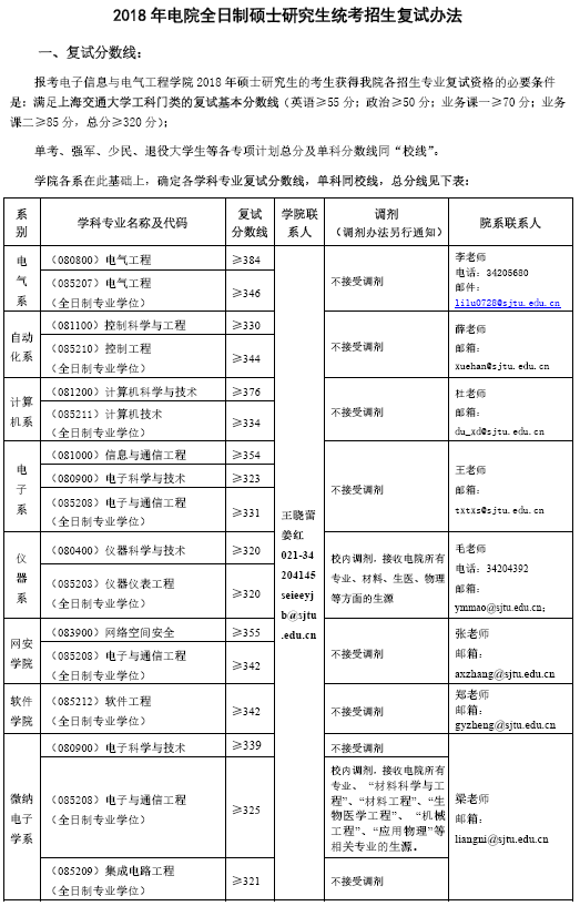 以上是聚创考研网为考生整理的"上海交通大学电子信息与电气工程学院2018年全日制硕士研究生统考招生复试办法"的相关考研信息,希望对大家考研备考有所帮助! 备考过程中如有疑问,也可以添加老师微信juchuang911进行咨询。