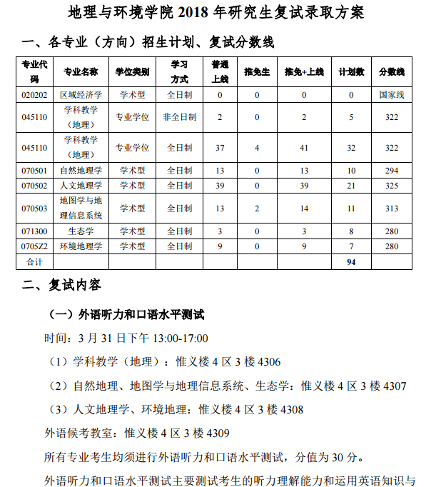 据悉江西师范大学地理与环境学院2018年研究生复试录取方案已公布,聚英江西师范大学考研网小编为你整理如下内容: