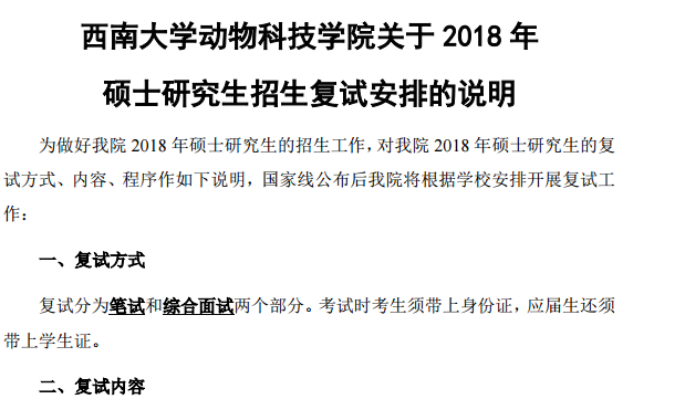 附件下载:西南大学动物科技学院关于2018年硕士研究生招生复试安排的说明.pdf