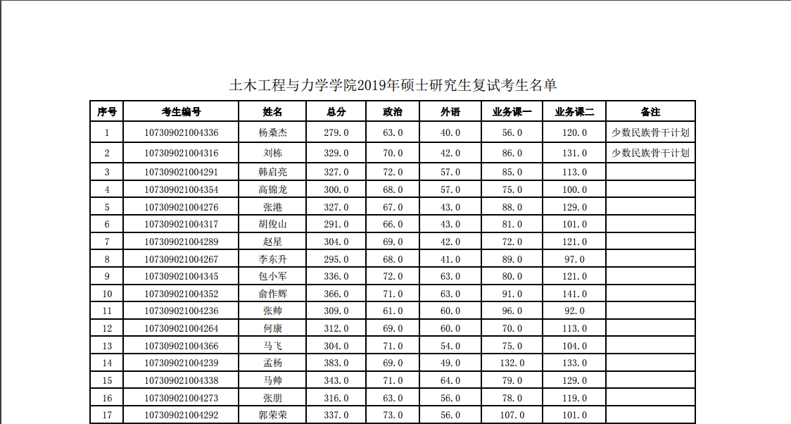 附件:土木工程与力学学院2019年硕士研究生复试考试名单
