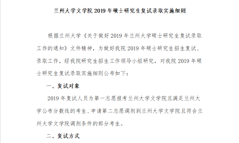 附件:兰州大学文学院2019硕士研究生复试录取实施细则