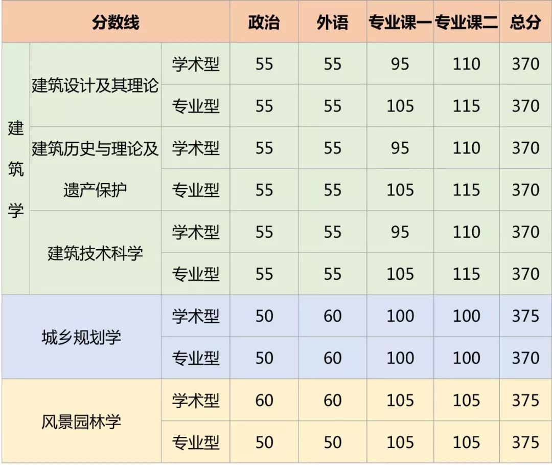 1.建筑学、城乡规划学、风景园林学复试分数线: