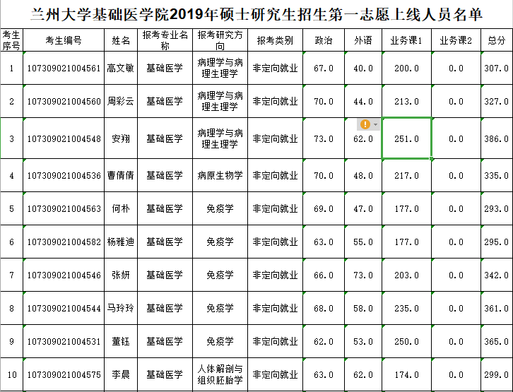 据悉,兰州大学基础医学院2019年硕士研究生招生第一志愿上线人员名单已公布,聚英兰州大学考研网小编为你整理如下内容: