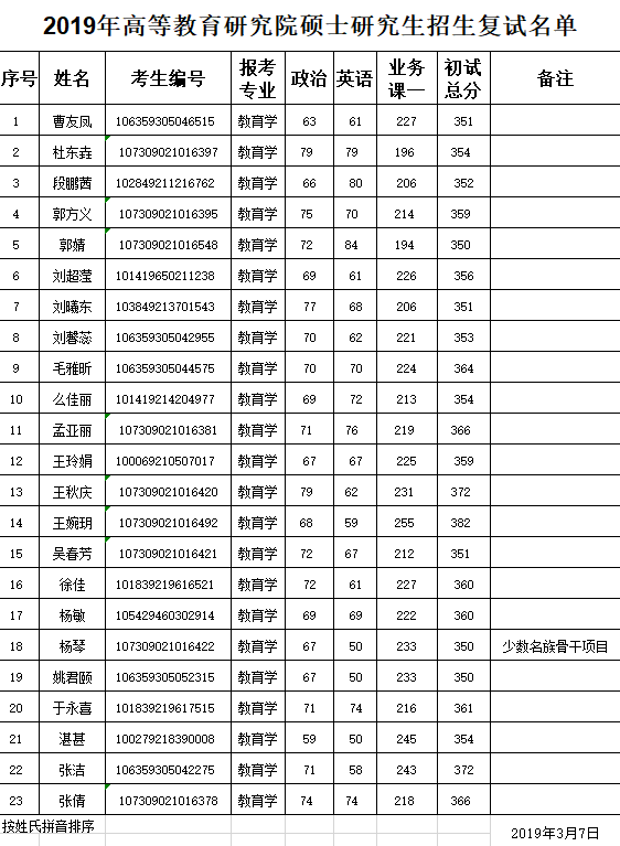 据悉,兰州大学高等教育研究院2019年硕士研究生招生复试名单已公布,聚英兰州大学考研网小编为你整理如下内容: