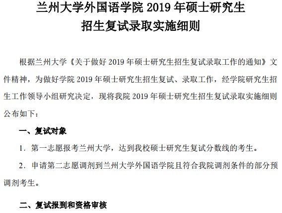 附件1:兰州大学外国语学院2019年硕士研究生 招生复试录取实施细则