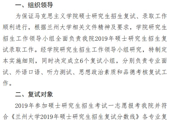 以上是聚创考研网为考生整理的"兰州大学马克思主义学院2019年硕士研究生复试录取实施细则"的相关考研信息,希望对大家考研备考有所帮助!