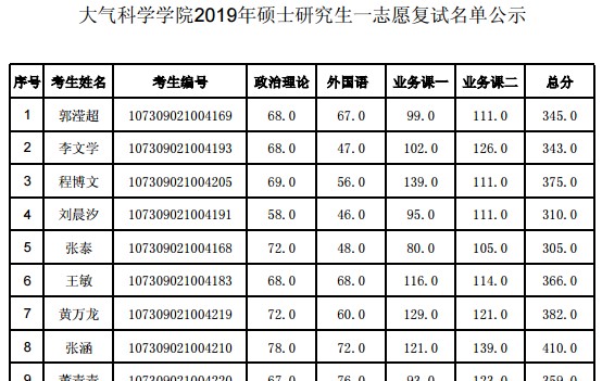 以上是聚创考研网为考生整理的"兰州大学大气科学学院2019年硕士研究生一志愿复试名单公示"的相关考研信息,希望对大家考研备考有所帮助!