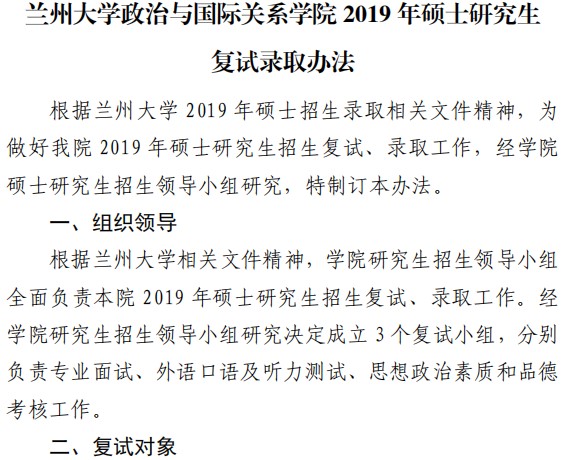 附件:兰州大学政治与国际关系学院2019年硕士研究生复试录取办法
