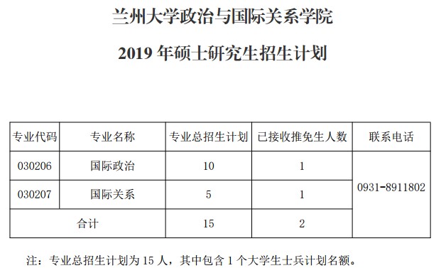 以上是聚创考研网为考生整理的"兰州大学政治与国际关系学院2019年硕士研究生招生计划"的相关考研信息,希望对大家考研备考有所帮助!